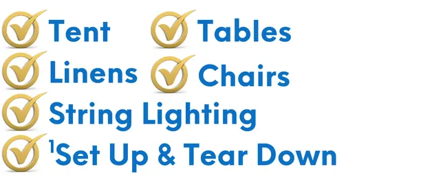 When choosing your event date, keep in mind that most of our Frame Tent packages are dropped off 1 or 2 days before your event and picked up the day after your event. We do not install Table Covers on Tables. Covers are washed and dried and provided in a hanger. Creases may show. Rates include overnight stays. *Restriction may apply.